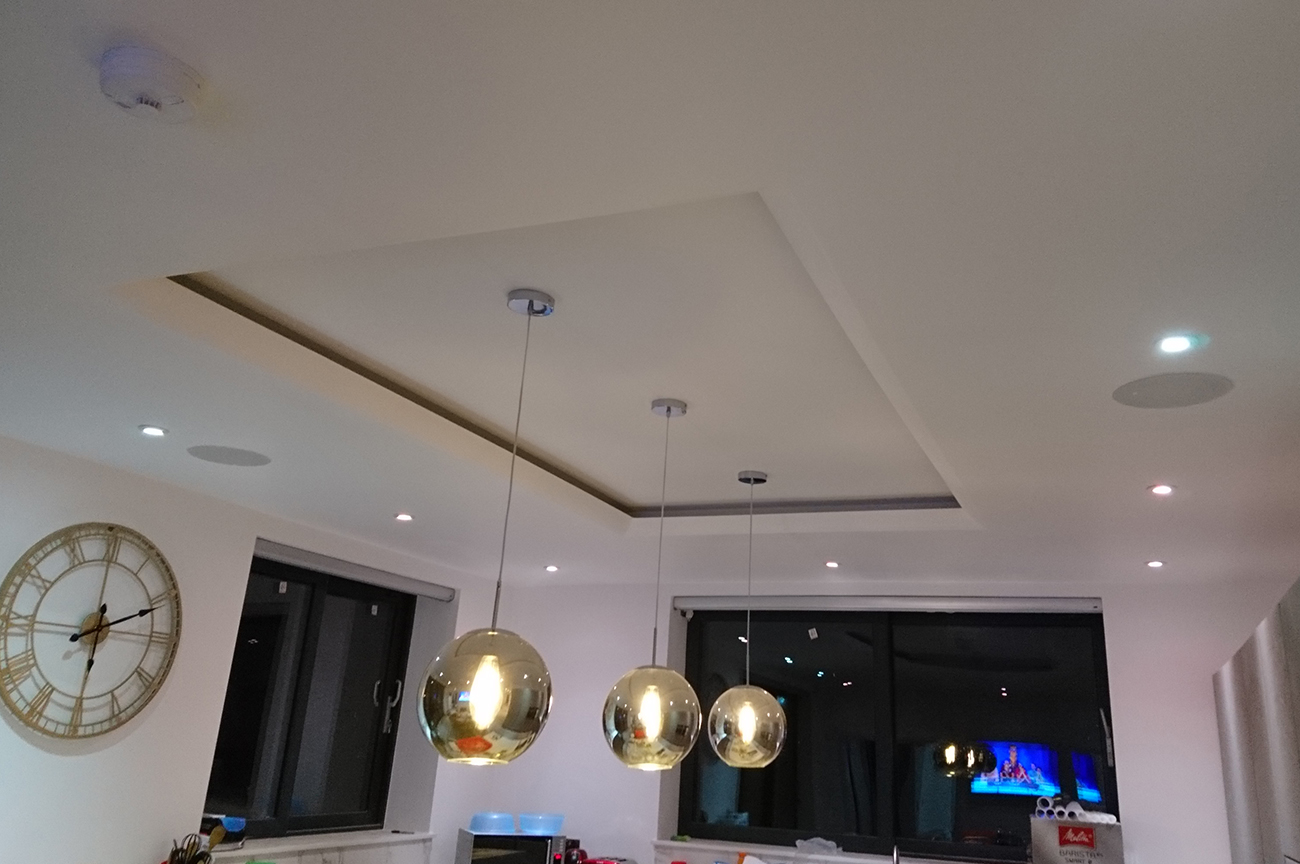 Next, we installed the ceiling speakers. When the house was in build phase, we used the speaker template to cut out the holes in the ceiling ready for this phase. Due to a change in building regulations, any ceiling speakers installed in new renovations now need a fire hood, so these were installed with the speakers. We also installed Bose Outdoor speakers on his balcony. Wherever Mr Sadiq walked in his property, he could hear what he wanted in concert like quality. Each room also has independent access so the whole family can listen to what they like individually. We have even connected Sky so he can here what’s on his sky box through the speakers. Again, all the Sonos control amps were installed in the loft, hidden away.